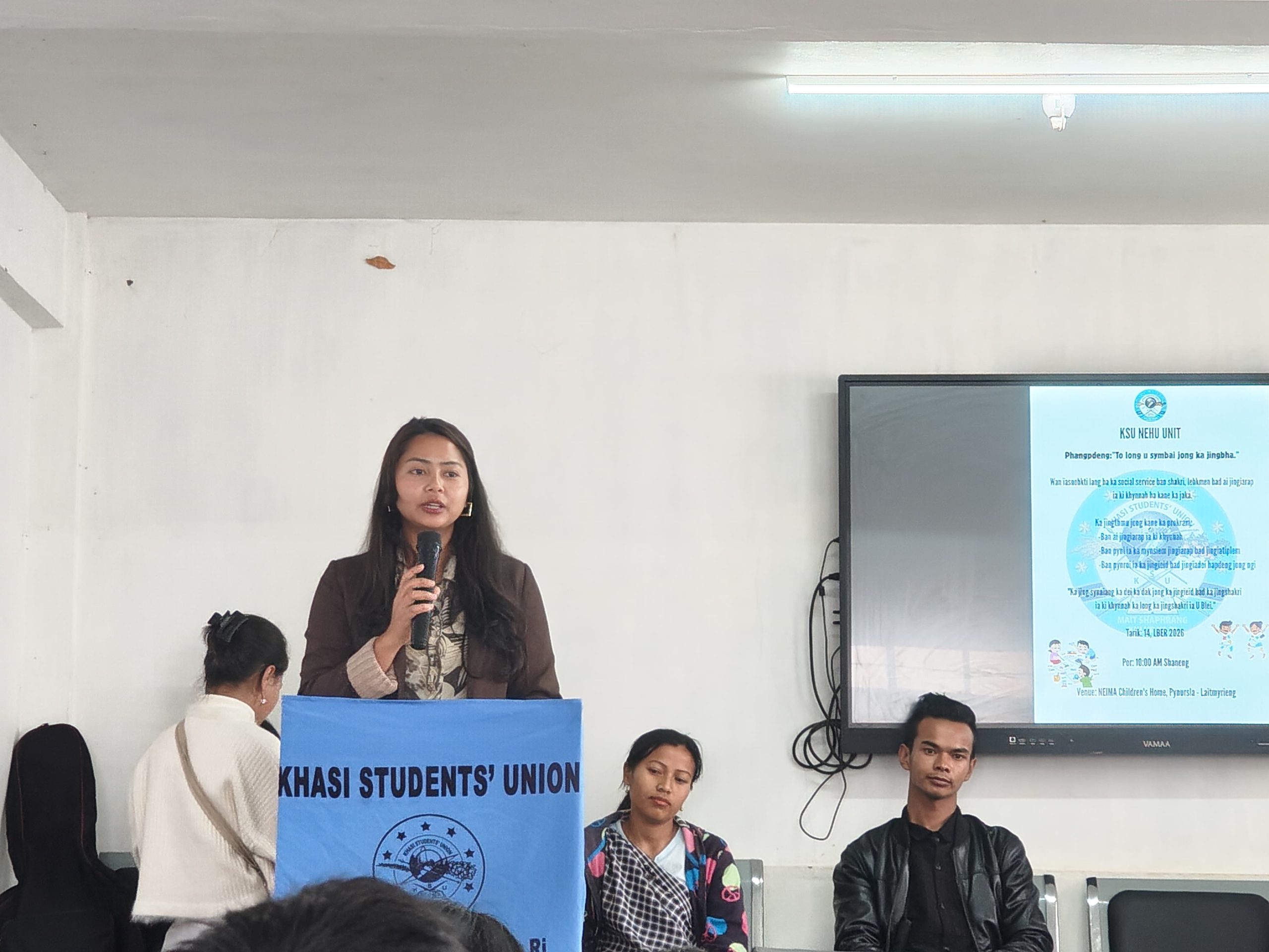 Shillong, Lber 16: Ha ka 14 tarik u lber 2026 ka KSU NEHU Unit hapoh ka jingialam ka samla Ibakordor Marwein General secretary, ka la ioh ia ka lad ban leit ai jingiarap ia ki khynnah jong ka Neima children's home pynursla halor ka Phang pdeng: "To long u symbai jong ka Jingbha".