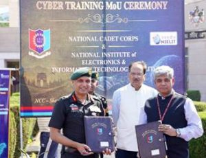 Ia kane ka jinghikai la pynlong da ka jingiatreilang bad ka National Institute of Electronics and Information Technology (NIELIT) kane ka jinghikai ka long kumno ban sngewthuh ha kaba ia dei bad kane ka jingma, ban pyntrei ia kane la ia soi ia ka soskular ha pdeng ka NCC bad ka NIELIT ha ka jingdon lang u Director General ka NCC, Lt Gen Virendra Vats bad Director General ka NIELIT, Dr Madan Mohan Tripathi.