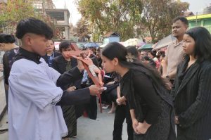 Shillong, Iaiong 03: Mynta ka sngi Thohdieng bakhuid ki khristan ha satlak ka pyrthei kila kynmaw burom ba dei ha kum kane ka sngi u Jisu u la shah iap halor Diengphna ha Kalbari, bad ha kane ka jylla Meghalaya ki riew ngeit khristan kila pyndon burom kyrpang ia kane ka sngi.