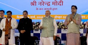Guwahati, Lber 14: U Myntri Rangbah Duh, Narendra Modi u la aiti sha ka ri ia ka elevated road corridor kaba pyniasoh ia ka Pandu Port ha Guwahati sha ka Surok Bah NH-27, bad u la buh ia u maw nongrim na ka bynta ka Cruise Terminal ha Biswanath Ghat bad u la pyndep ia ka Bhoomi Pujan na ka bynta ka Regional Centre of Excellence (RCoE) ha Bogibeel, Dibrugarh, bad ka Cruise Terminal ha Neamati.