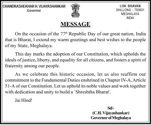 Shillong, Jyllalyngkot 25: Man u snem ha ka sngi rakhe ia ka Republic Day la juh ai ia ka khusnam sha ki riew paidbah kiba la ai ka jingshari ha ki kyran bapher bapher ha ka imlang sahlang kaba ki trei bad kane ka kyrdan “Padma Shri” ka dei ka khusnam kaba heh duh na ka bynta ki riew paidbah, kine ki don lai bynta, Padma Vibhushan, Padma Bhushan bad Padma Shri.
